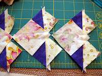 Yesterday, after cutting out all the squares I needed, I put together 16 FGUs from four large ones and 16 small ones, with only a tiny pile of trimmed ears left over -- a far cry from the small triangles I've collected using my previous method. Plus I didn't have to invest in new rulers and I didn't have to sew bias edges. What's not to love?