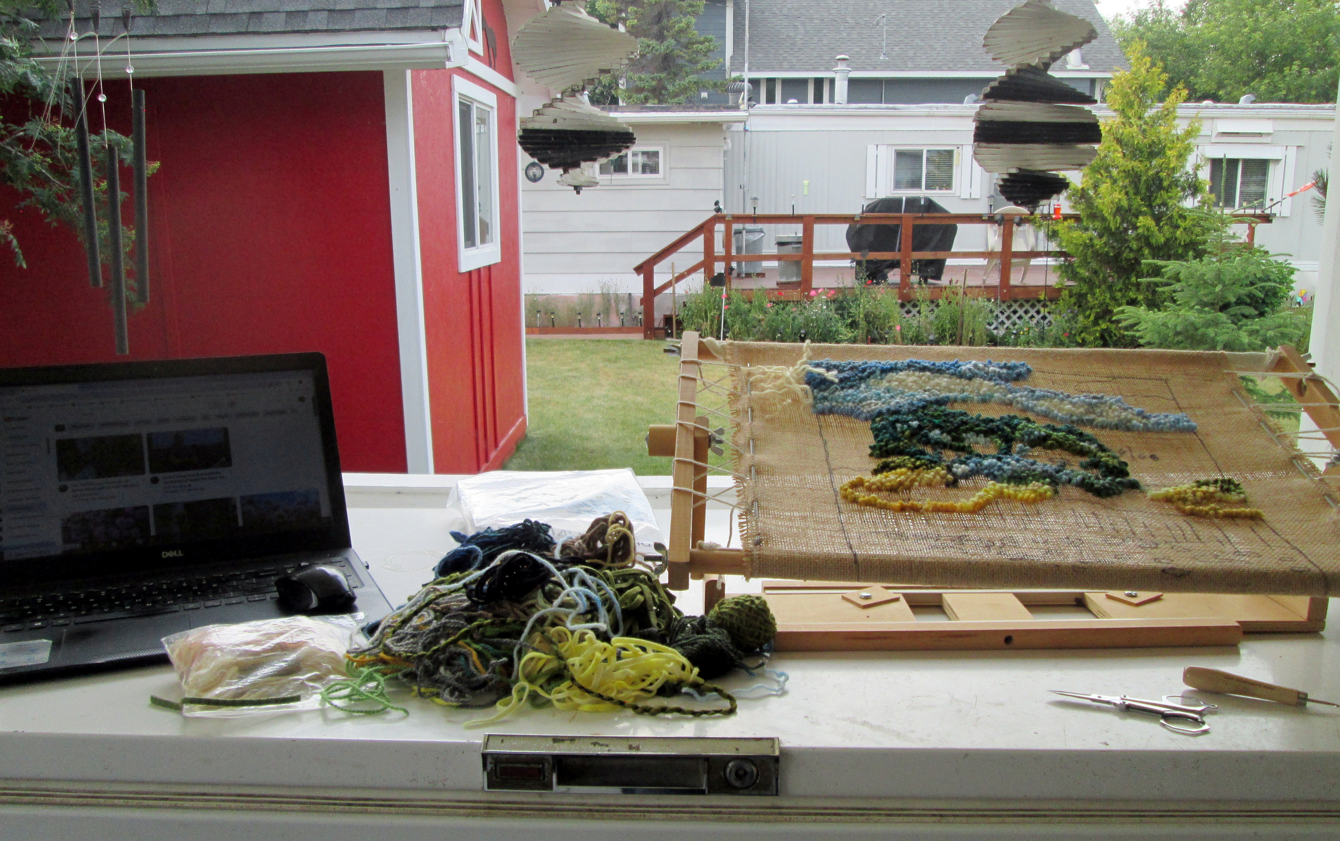 I followed that by creating a landscape based on a view on the walking route I take regularly around this wee hamlet. I call it "Tree Island" (for obvious reasons), and will have it framed and probably hung in the Gallery at Curiosity Art & Framing in Red Deer. I finished it earlier this week, but it has to be blocked and hemmed before I take it for a frame: